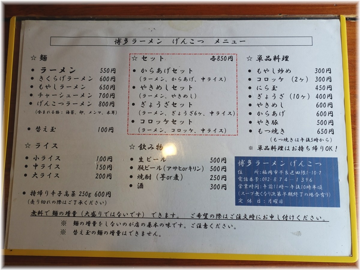 博多ラーメンげんこつ@福岡市早良区田隈(野芥)