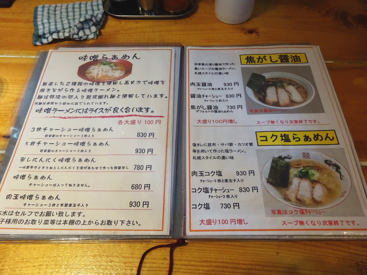 てことで、くるまやといったら味噌でしょってことでチャーシュー3枚入りの味噌ラーメンに、あ、辛ネギも定番だったと思い出し、後からねぎトッピングもお願いしました。