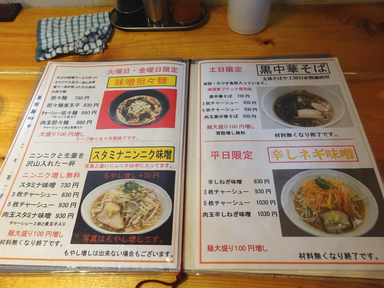 野菜タンメン830円 他メニューはこちら