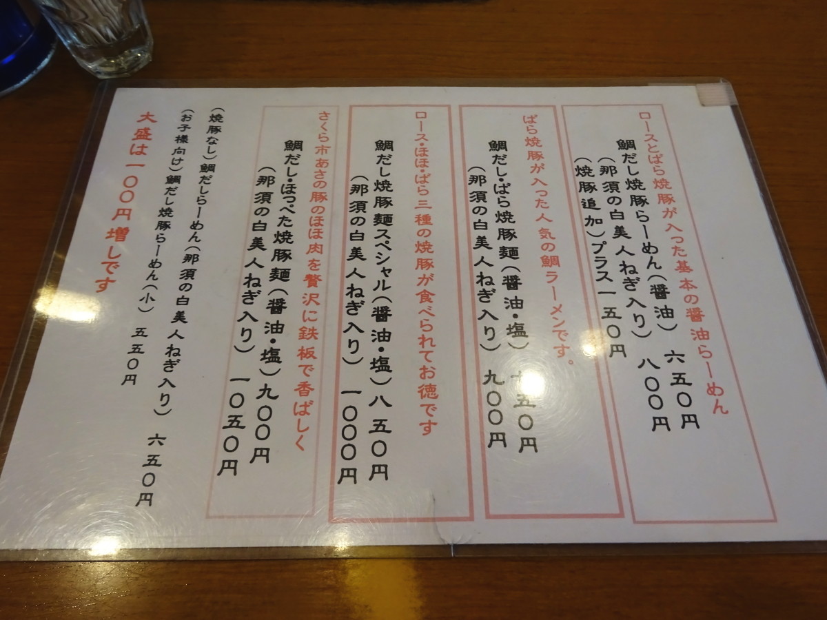 色々ありますが「鯛だし焼豚らーめん」が基本らしいです。
