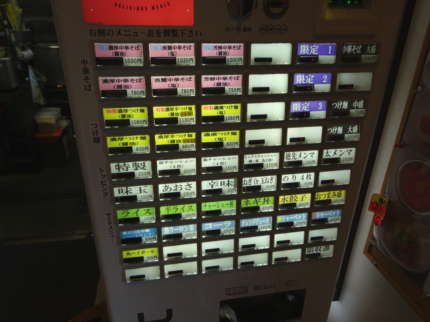 とりあえず食券機左上の特製濃厚中華そばをお願いしました。