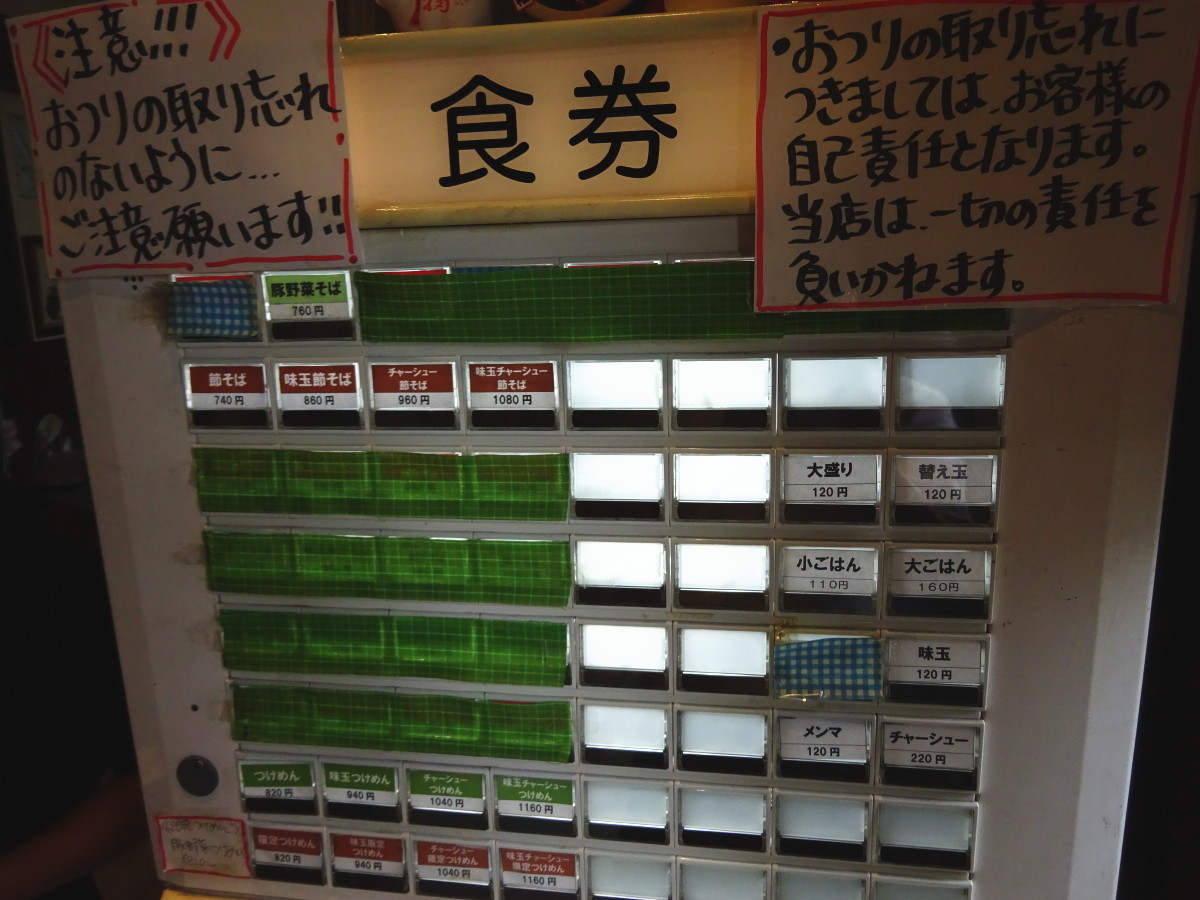 私はデフォの節そばの味玉付を頼みましたが、他のお客さんのほとんどは豚野菜そばを頼んでいました。