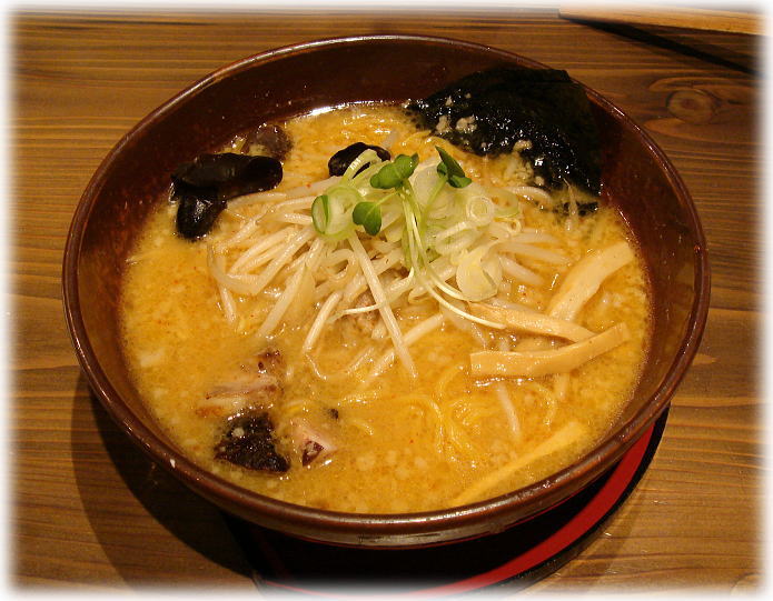味噌ラーメンを注文してみました。見た目は結構美味しそうですね♪さ〜て一口・・・。「×$Я%И(゚д゚)!?」(爆)なんなんでしょうこの味は!!ラードか背脂なんでしょうけど、油くさい臭いが口の中いっぱいに広がって正直不味いです!!なんじゃこりゃ?